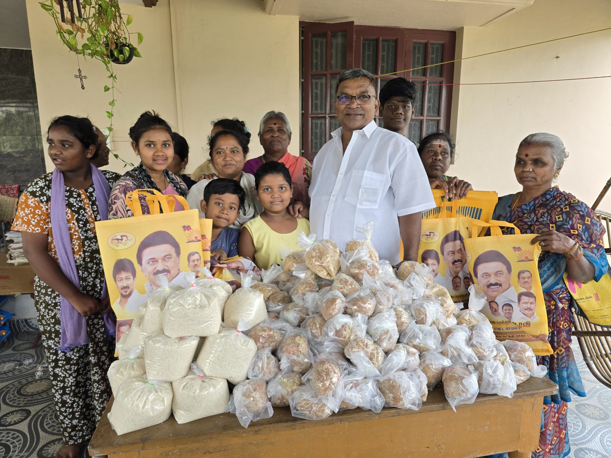 தமிழ்நாடு முதலமைச்சர் மு.க.ஸ்டாலின் அவர்கள் ஆணைக்கிணங்க,மேற்கு மண்டல பொறுப்பாளர் முன்னாள் அமைச்சர் செந்தில் பாலாஜி அவர்களின் ஆலோசனை படியும், கோவை வடக்கு மாவட்ட திமுக செயலாளர் தொ.ஆர்.ரவி மற்றும் கவுண்டம்பாளையம் சட்டமன்ற தொகுதி பொறுப்பாளர் மூலனூர் கார்த்தி ஆகியோரின் வழிகாட்டுதல் படியும் கோவை வடக்கு மாவட்டம் கவுண்டம்பாளையம் சட்டமன்ற தொகுதிக்கு உட்பட்ட வையாபுரி நகரில் தூய்மை பணியாளர்கள், மாற்றுத்திறனாளிகள் மற்றும் ஏழை எளிய மக்களின் 300 குடும்பங்களுக்கு பொங்கல் பரிசு பொருட்களான வெல்லம், பச்சரிசி, கரும்பு, நெய்,முந்திரி திராட்சை அடங்கிய பொங்கல் தொகுப்பு மற்றும் பரிசு தொகையை கோவை வடக்கு மாவட்ட சிறுபான்மை பிரிவு தலைவர் ஆரோக்கிய ஜான் வழங்கினார்.